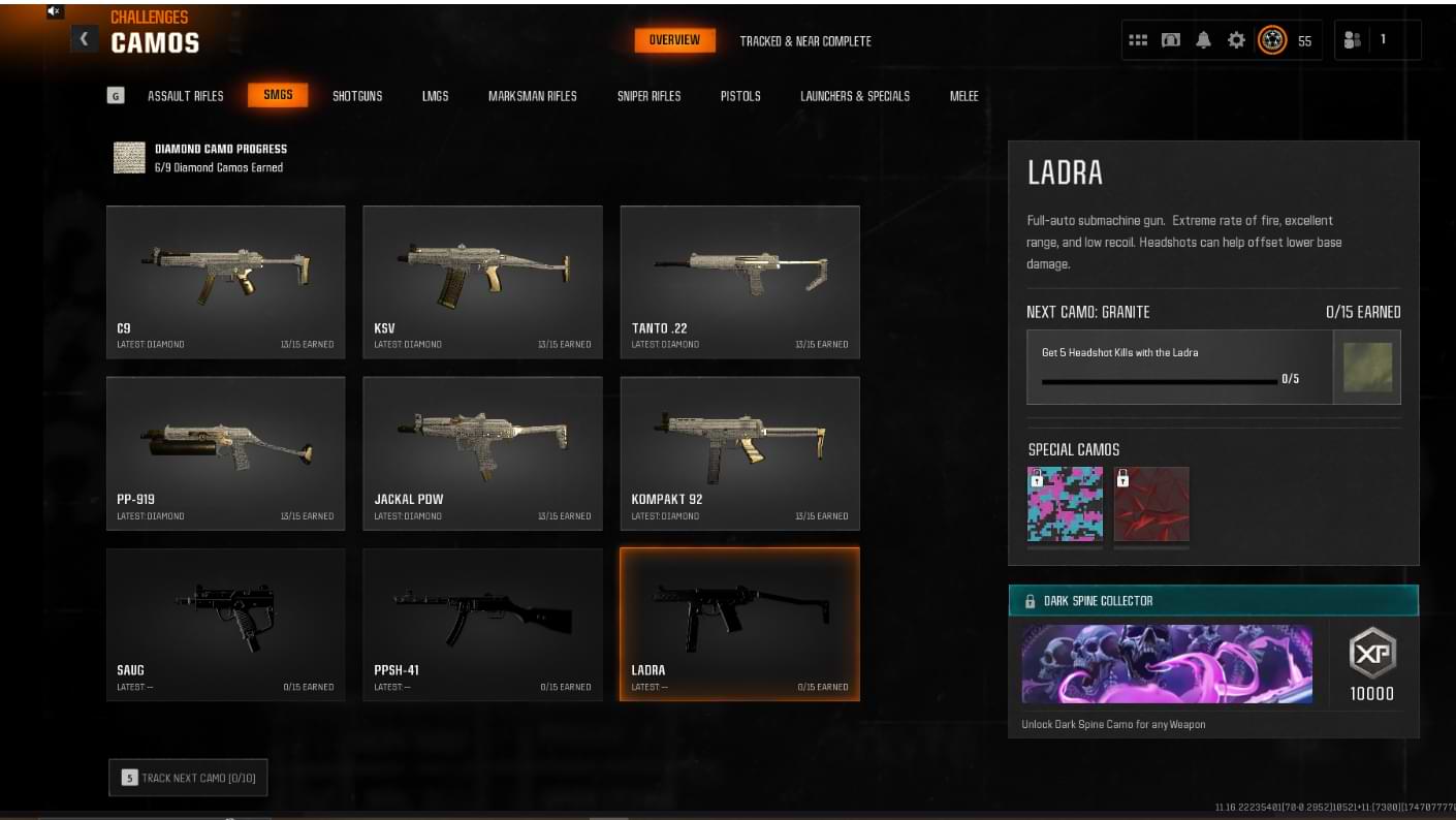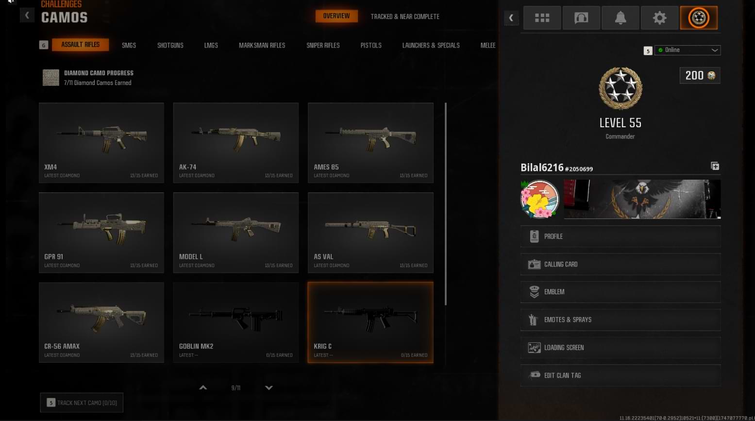 - Unlocked Progress: 13 Diamond Camos + Level 55