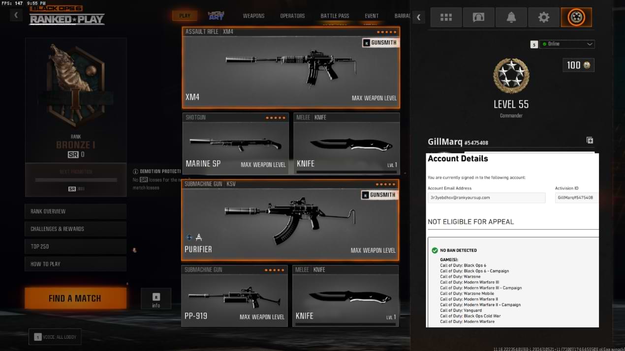 ❌ Note: Black Ops 6 game is not purchased on this account.