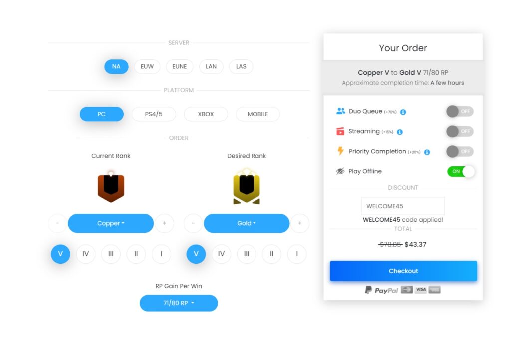 Choose your preferred service and customize the details — rank goals, platform, region, or play style.