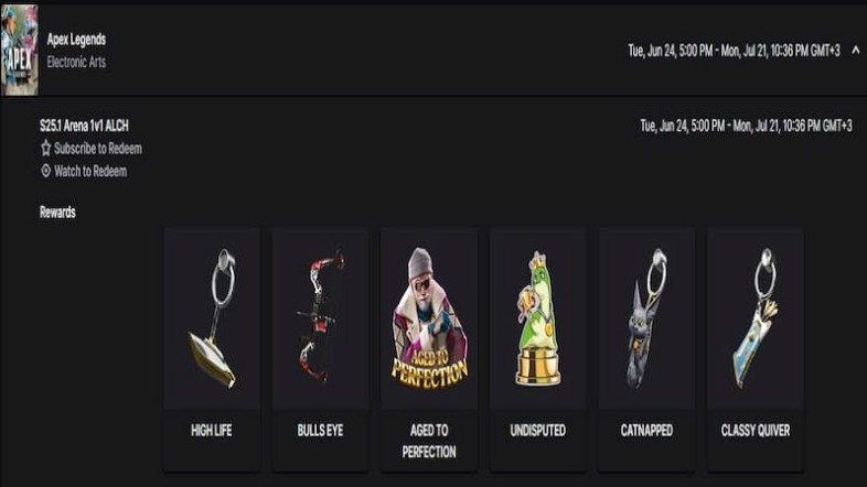 There is a total of six exclusive Twitch drops for Apex Legends Season 25 Split 2. However, not all rewards are free to claim just by watching time. Some require buying a subscription. Here are all the rewards you can get.