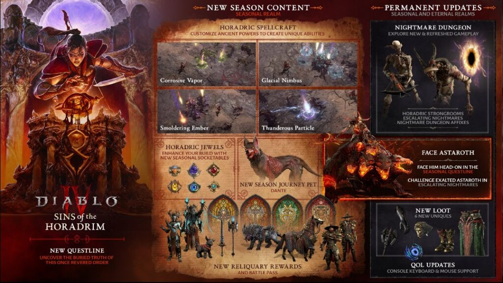 Diablo IV next season is coming soon, and details were revealed via the Blizzard Blog. Season 9 Sins of the Horadrim is a big update and will bring new ways to play Diablo IV and new Endgame content. Sins of the Horadrim will launch next week. However, Blizzard is still hosting a developer deep dive for the upcoming season on June 27th at 11 am PDT.
