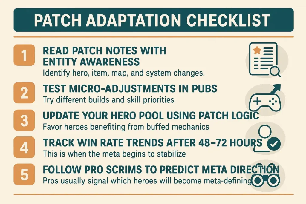 Example: A buff to Maelstrom directly elevates farming carries; a nerf to Blink slows initiator tempo.