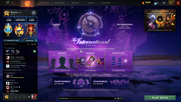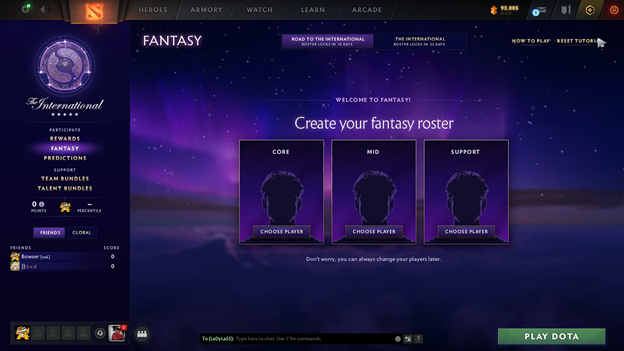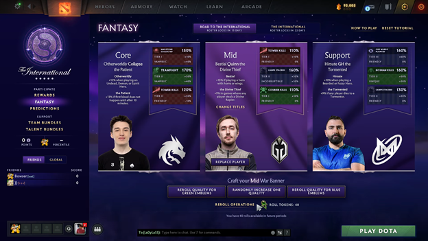 • Fantasy League: Draft your dream team from TI players and earn points based on their real in-game performance.