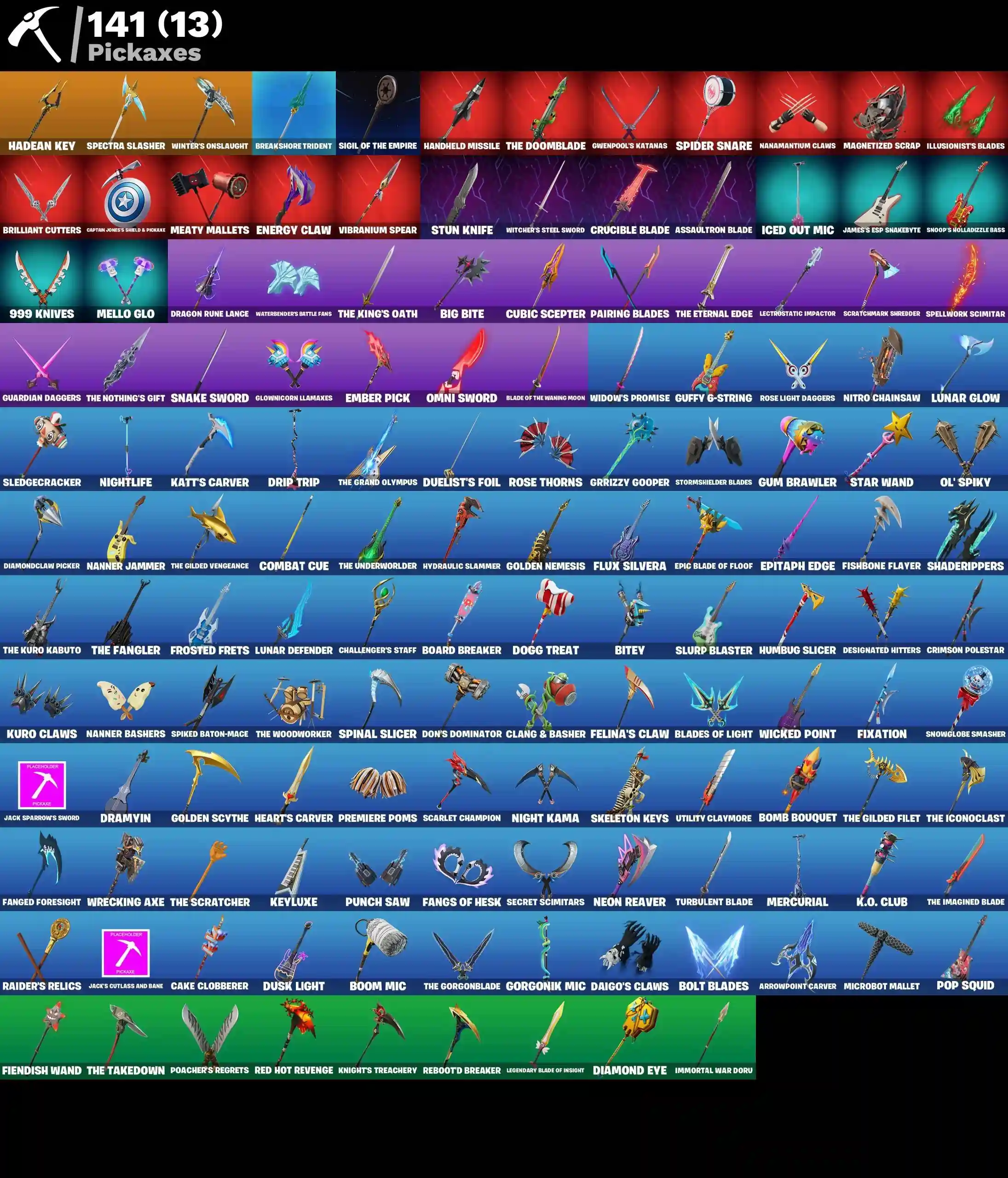 - 141 Pickaxes and 101 Gliders to mix and match your loadout