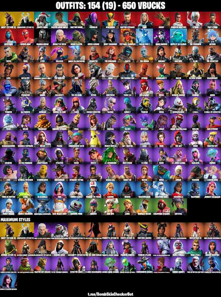 - 💫 Top Skins: Tony Stark, Ragnarok, Luxe, Peely, Polar Peely, Crystal, Galaxia