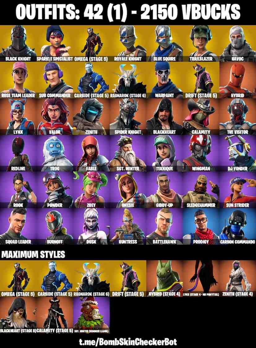 This Fortnite account features 42 premium skins, including ultra-rare OG cosmetics like Black Knight and Royale Knight. A perfect choice for collectors looking to stand out in any lobby.