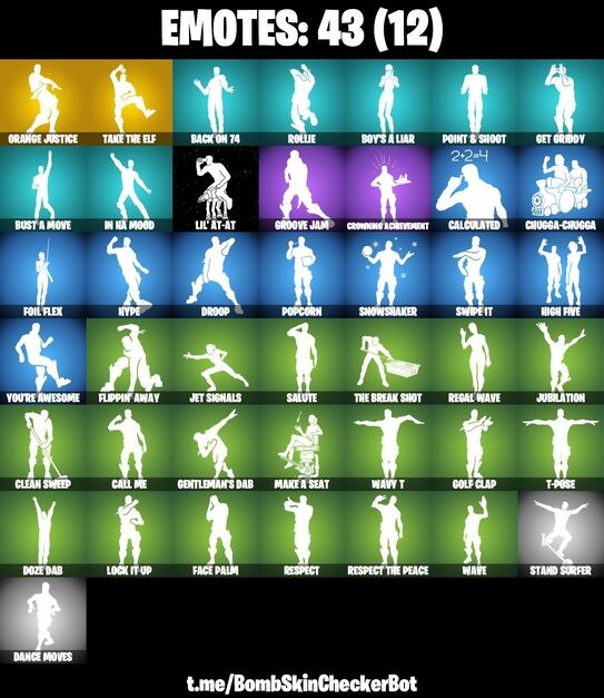 • ✅ Rare emotes like Take The Elf & Orange Justice