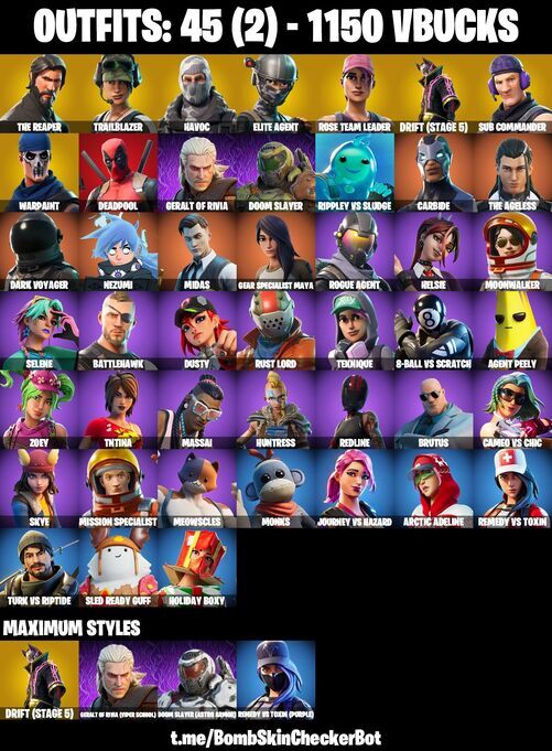 This exclusive Fortnite account is loaded with 45 premium skins, including iconic OGs like The Reaper (John Wick), Elite Agent, Rogue Agent, and Elite Servo gear.
