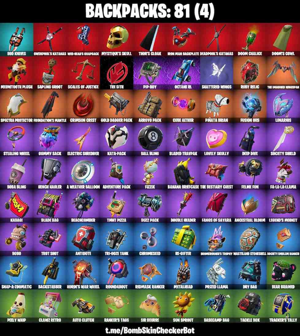 + 81 Backpacks, 60 Emotes, 73 Pickaxes