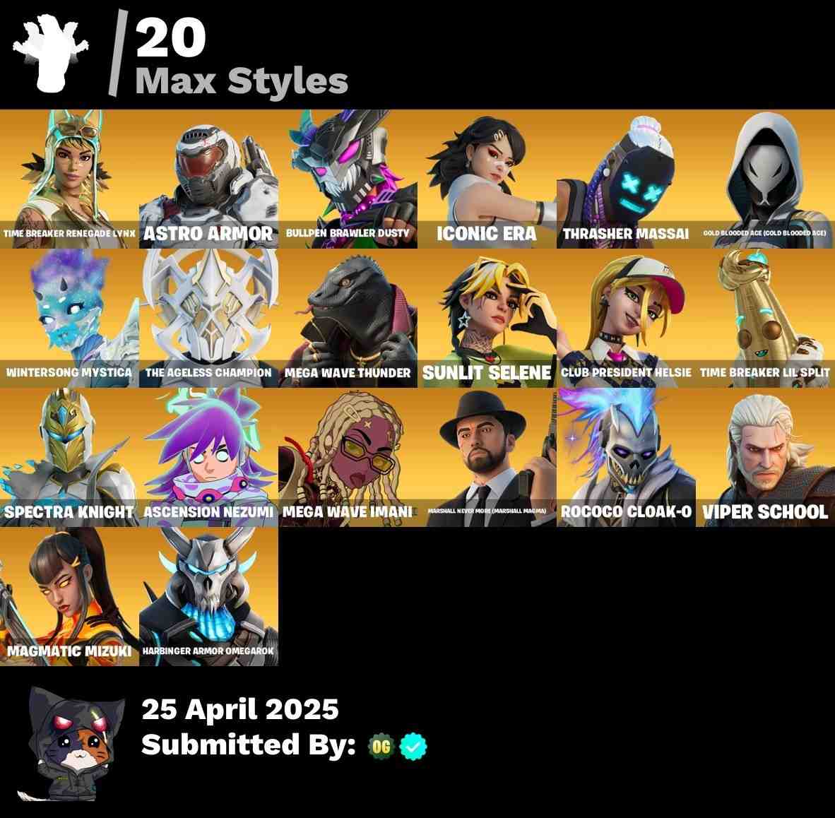 LeBron James, Geralt of Rivia, Doom Slayer, Slayer Juice WRLD, Omegarok, Frostbite, Felina, Doggo, Axion Sentinel, Lil Split, Ruby, Potassius Peels, Renzo, Stray, Brite Gunner, Mina Park & more!