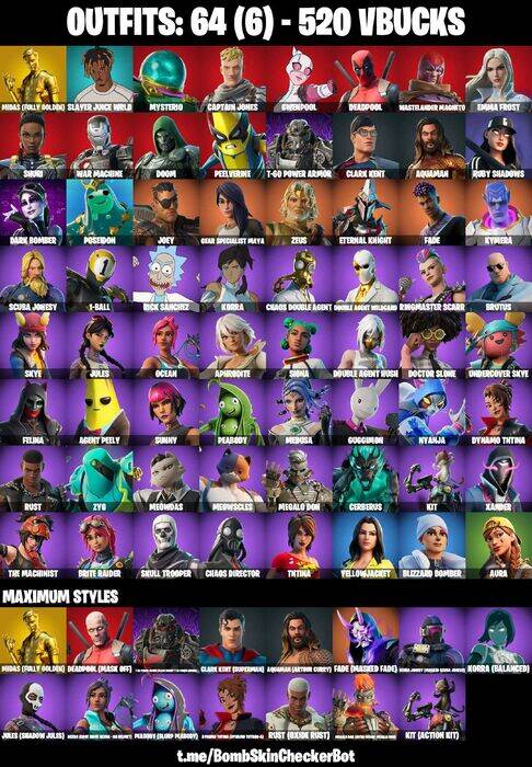🔥 64 Skins Fortnite PC Account – Skull Trooper + Midas + Superman