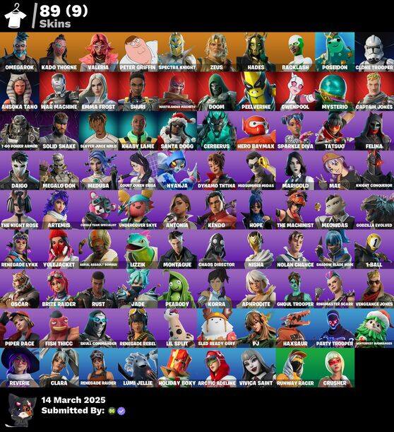 An elite Fortnite account for collectors 🔥. With Renegade Raider, Peelverine, God-tier collabs and a stacked 89-skin roster, it’s a perfect blend of OG, Icon, and Mythic! Delivered instantly — full ownership guaranteed!