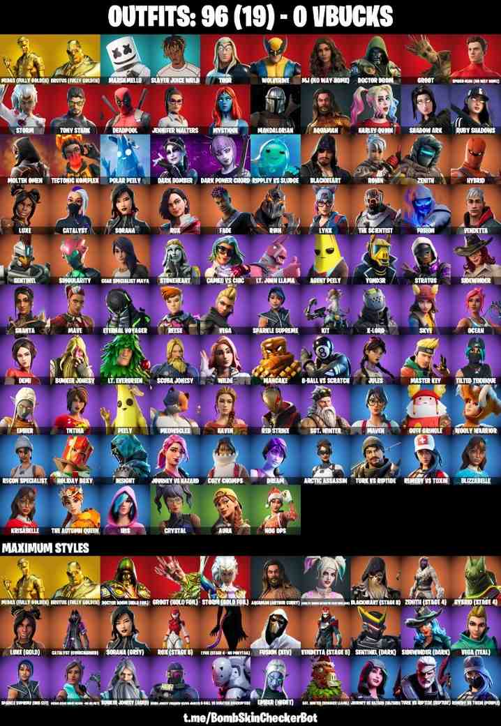 Unlock a stacked Fortnite account featuring 96 total skins and high-value cosmetics like the Merry Minty Axe, Midas, Harley Quinn MAX style, Deadpool, and the entire Peely lineup.