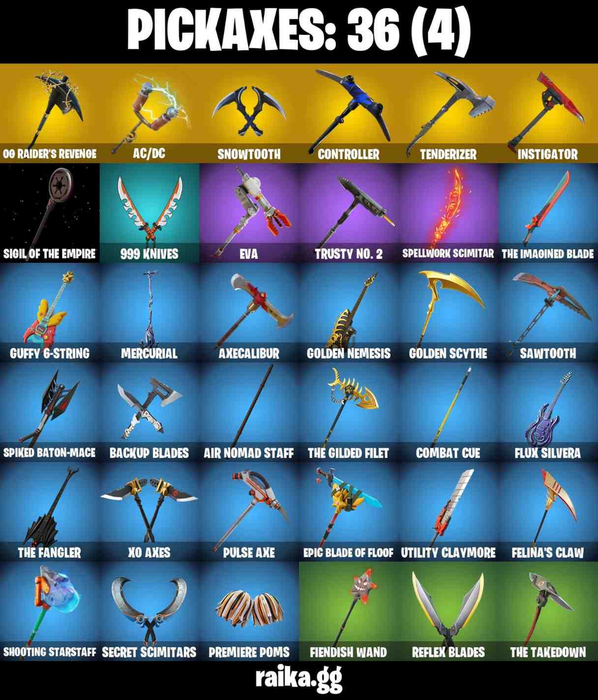 - 🛠️ Pickaxes: 36 (Raider’s Revenge, AC/DC)