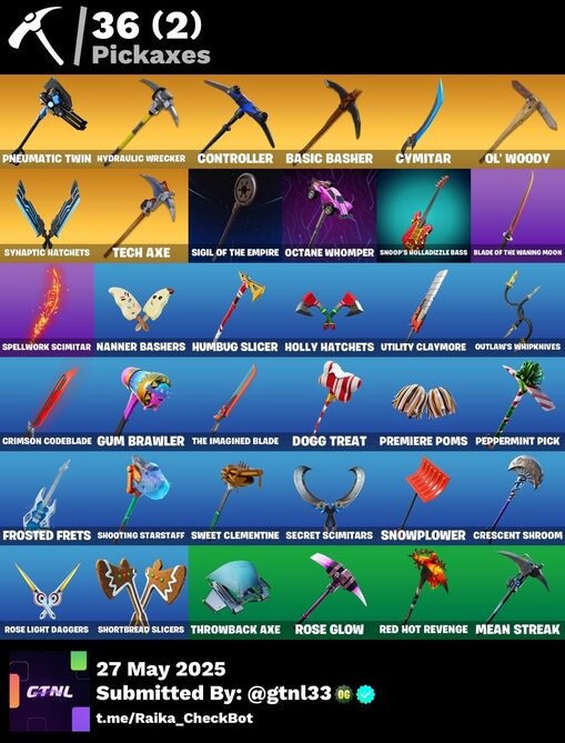 - 🎯 16+ Skins, 36+ Pickaxes, 24+ Emotes