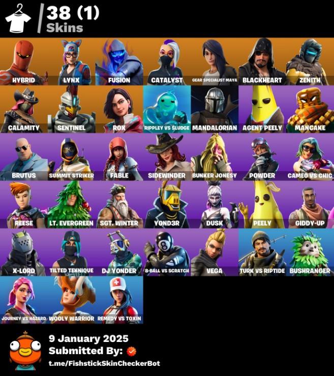 - 🛡️ Skins: Mandalorian, Lynx, Zenith, Blackheart, Calamity, Sentinel, Maya, Rox, Catalyst, Fusion + more
