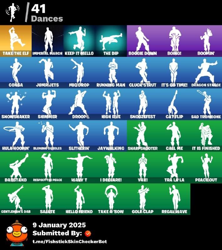 - 🕺 Emotes: 42+ including Boomin, Imperial March, Boogie Down, Snowshaker, Keep It Mello