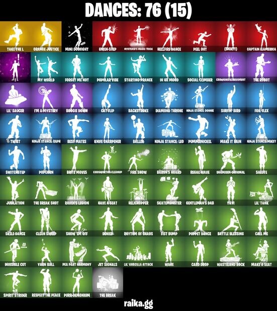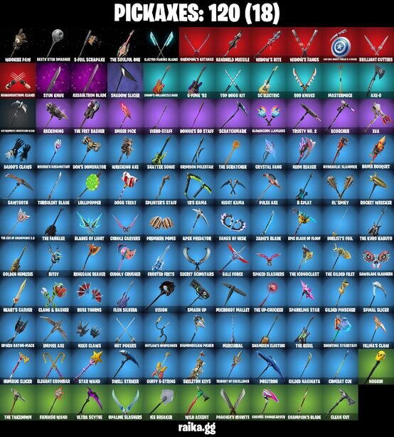 - ๐ผ 134 Back Blings, 120 Pickaxes, 76 Emotes, 79 Gliders