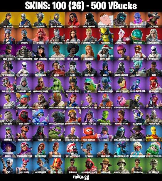 - ๐ 100 Skins โ Including The Reaper, Blue Squire, Elite Agent, Rogue Agent, Joltara, Dark Voyager