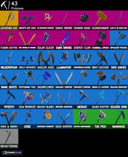 ✅ Pickaxes: Leviathan Axe, Sap Axes, Thunder Crash, Sludgehammer, Solar Slicer, Snake Sword, Brat Catcher & more
