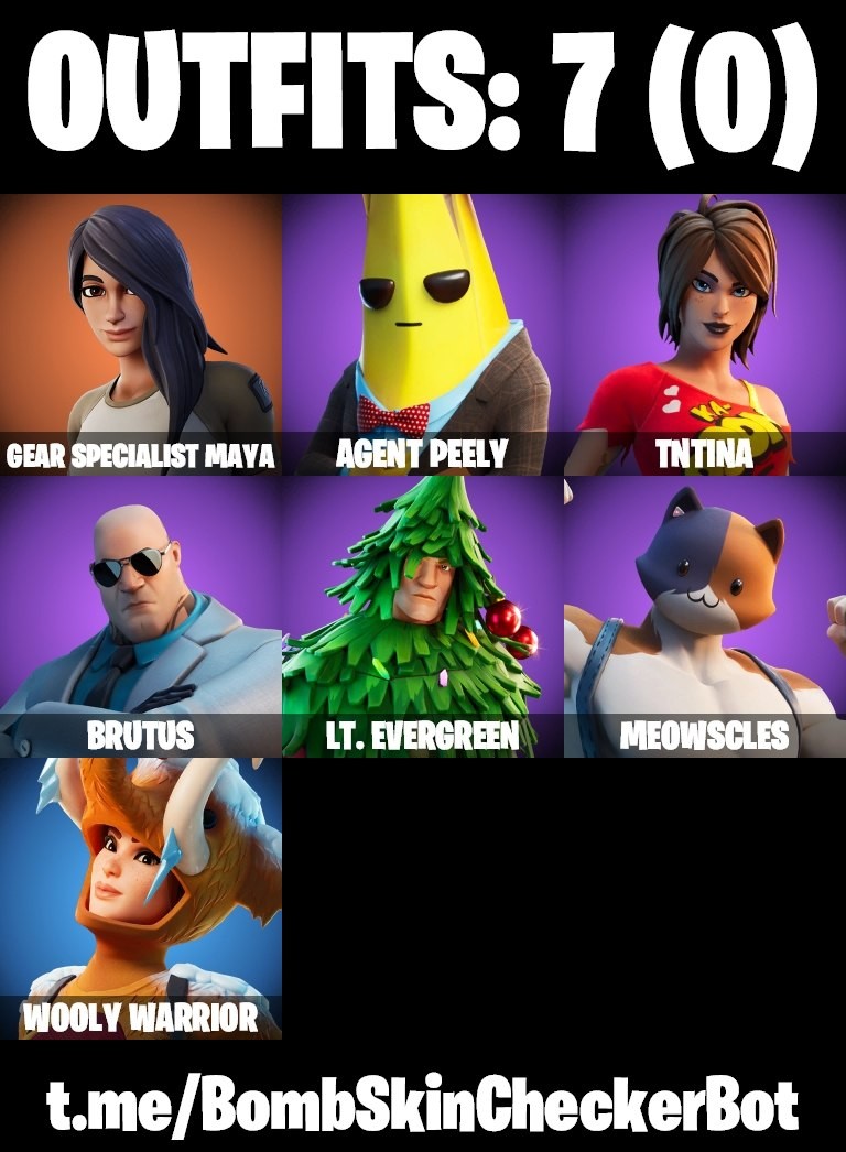 - 🧍♂️ Skins: 7 Total (including TNTina, Brutus, Lt. Evergreen)