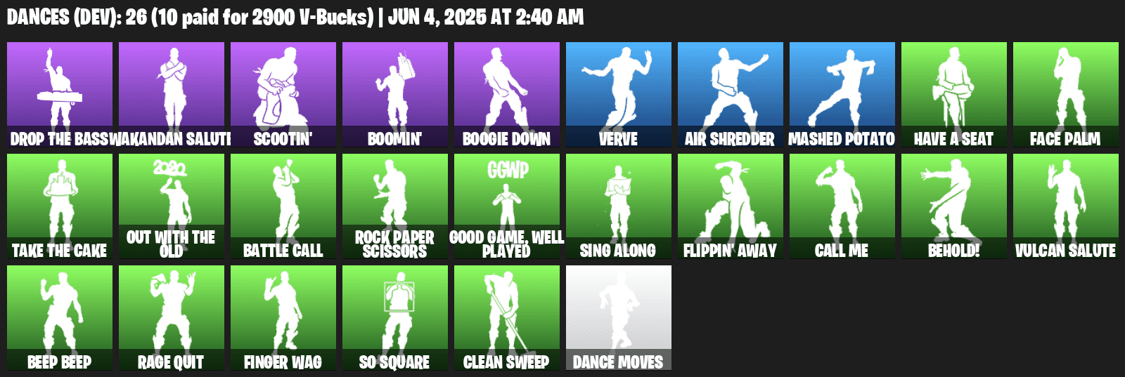 ✅ Emotes: Drop The Bass, Wakandan Salute, Scootin’, Verve, Boomin’, Flippin’ Away, Face Palm, Sing Along & more