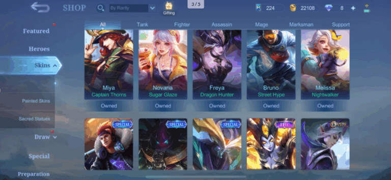 Mobile Legends Account with 328 Skins & Legend Freya