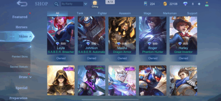 Mobile Legends 90 Heroes, 184 Skins, Mythic 24