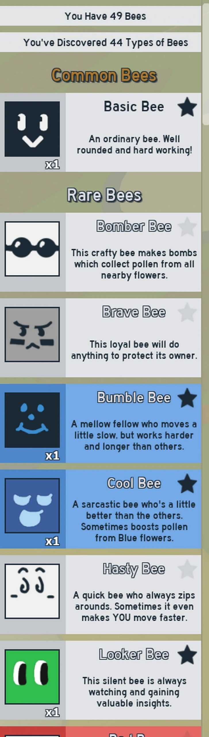 • 49 Bees – Including 28 rare Mythic Bees