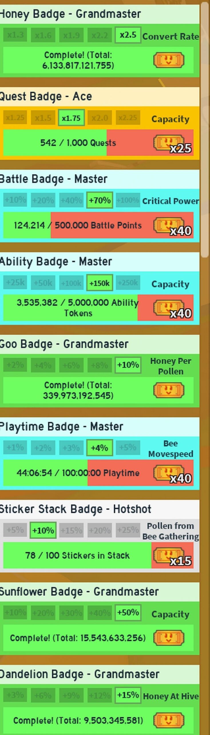• 6 Trillion Honey Badge – Massive grinding stats